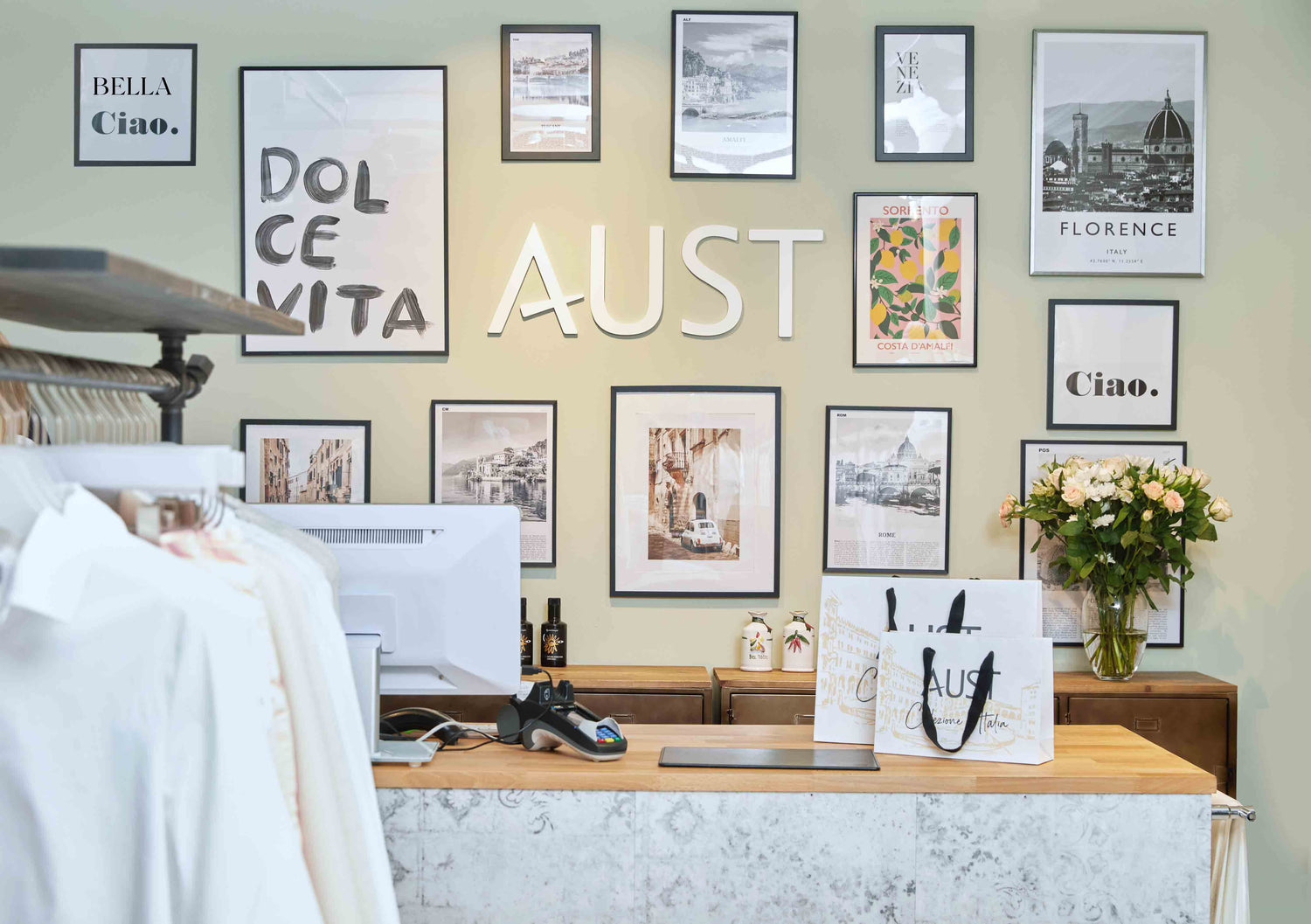 Alle meine Lieblingsoutfits sind von AUST. Durch die familiäre und italienische Atmosphäre fühlt man sich immer sofort wohl.