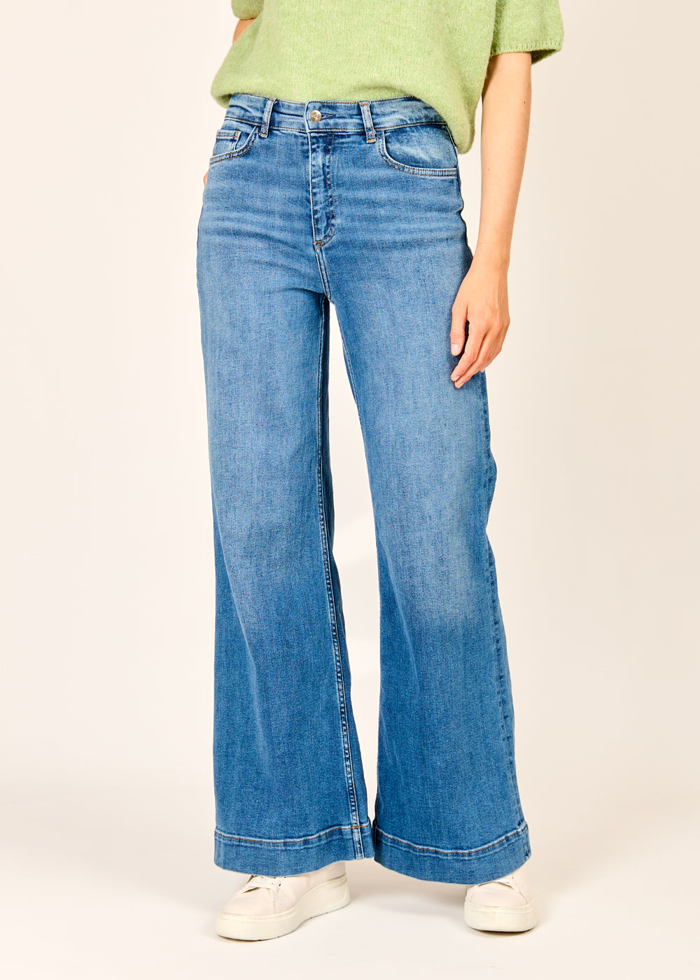 Diese Jeans im eleganten Marlene-Stil besticht durch ihre weite Passform, die eine lässige Silhouette kreiert und gleichzeitig höchsten Tragekomfort bietet. Der hochwertige Denim-Stoff verleiht der Hose eine edle Ausstrahlung und macht sie zu einem vielseitigen Allrounder, der sich sowohl schick als auch leger kombinieren lässt. Mit dieser Jeans setzen Sie ein modisches Statement und beweisen Stilbewusstsein in jeder Situation.