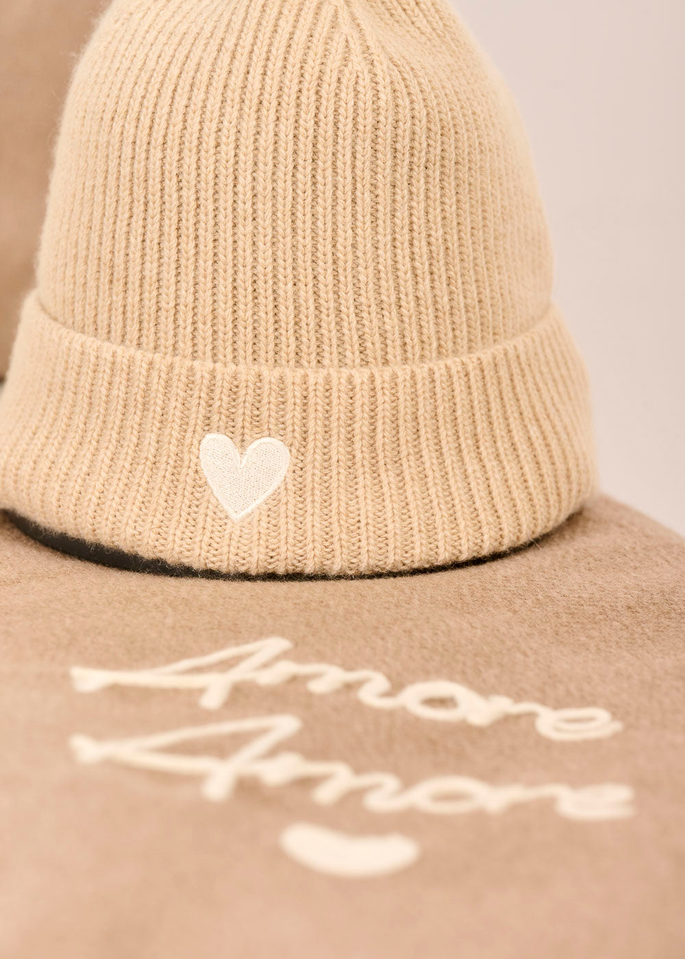 Die helle Mütze ist ein Accessoire, das Komfort, Stil und Liebe zum Detail miteinander verbindet. Das kleine Herzmotiv setzt einen charmanten, verspielten Akzent und macht die Mütze zum perfekten Begleiter an kühlen Tagen.