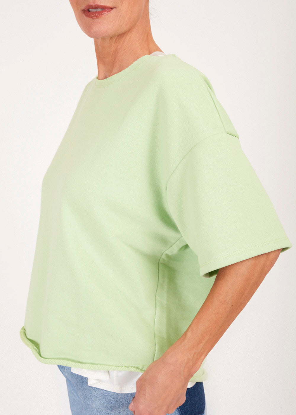 Der perfekte Sweatpullover für jeden Anlass - Egal ob du ihn lässig zu einer Jeans oder schicker kombinieren möchtest. Durch den halben Arm und die Farbe "kiwi" eignet sich der Pullover ideal für schöne Frühlingstage.