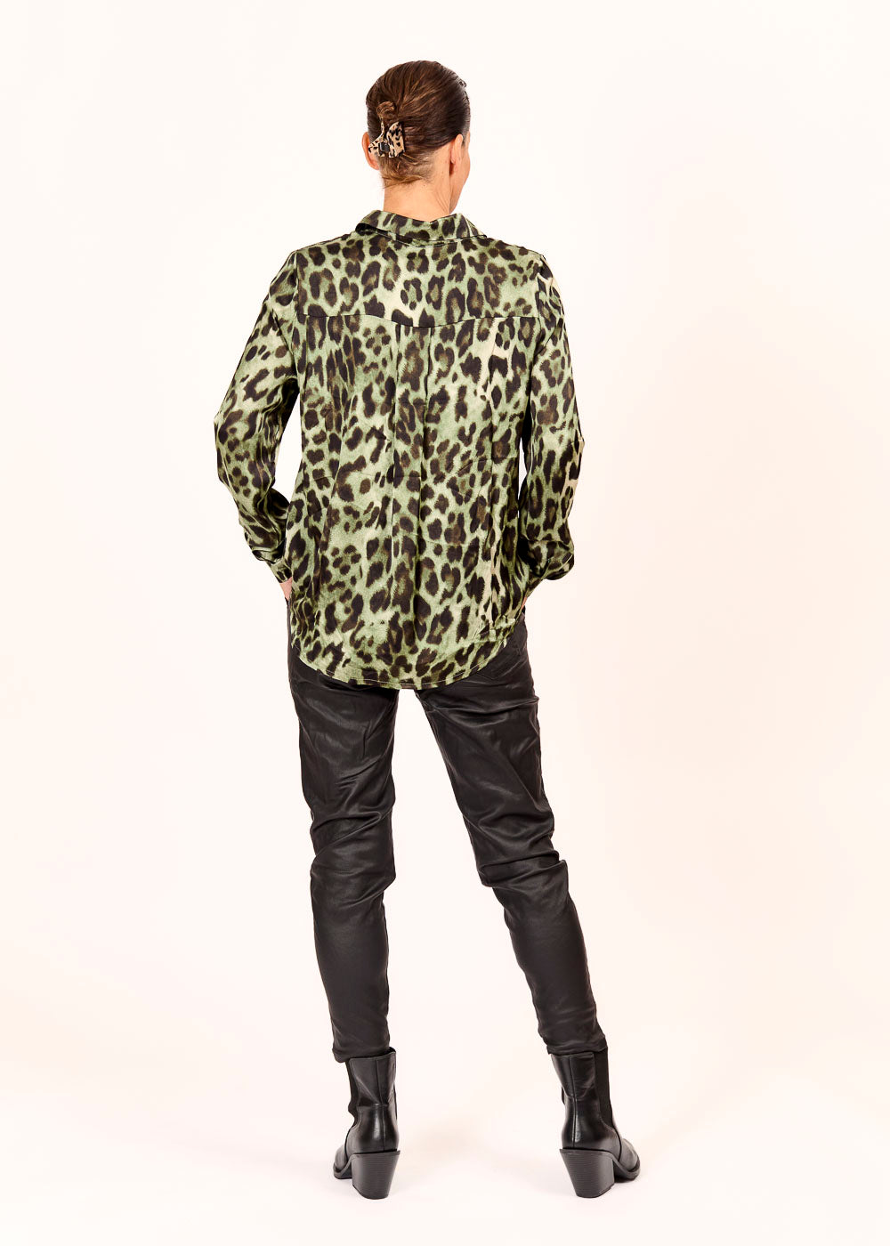 Entdecke die stilvolle Animalbluse in einem trendigen Olivgrün, die Deinem Outfit das gewisse Etwas verleiht. Perfekt für jeden Anlass – bequem, vielseitig und ein echter Hingucker!