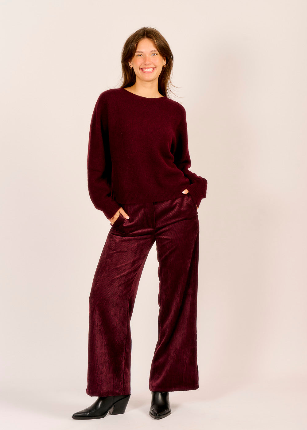 Komfort trifft Eleganz: Diese Cordhose in edlem Vino ist wie ein warmer Begleiter für deinen Alltag. Der weiche Stoff und der entspannte Schnitt sorgen für ein angenehmes Tragegefühl, das den ganzen Tag anhält. Die seitlichen Taschen setzen praktische Akzente.